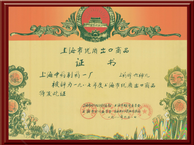 上药牌六神丸被证为一九八七年度上海市优质出口商品