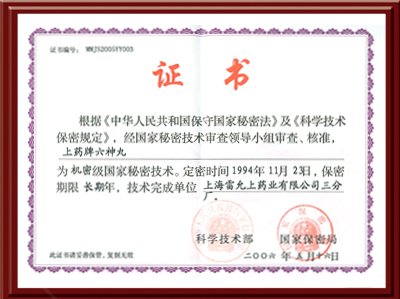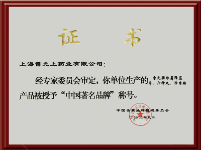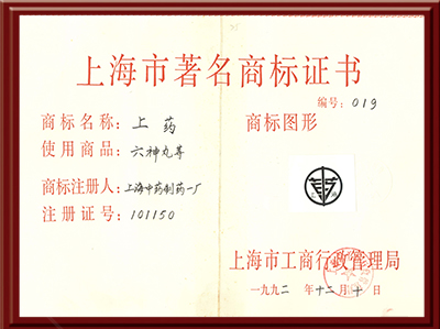 上药牌六神丸质量优良,该商标在市场上享有信誉,特授予国家著名商标称号并颁发证书
