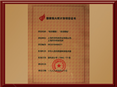银杏酮酯、杏灵颗粒荣获国家级火炬计划项目证书