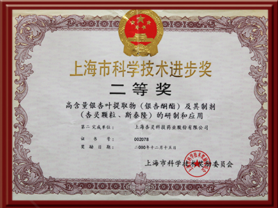 银杏酮酯、杏灵颗粒、斯泰隆荣获上海市科学技术进步奖二等奖