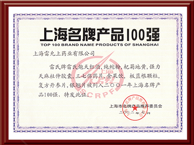 雷氏炮天红酒,纯蛇粉,杞菊地黄,强力麻杜仲胶囊,三七伤药片,金果饮,板蓝根颗粒,复方丹参片,银翘片被列入二〇〇一年上海名片产品100强