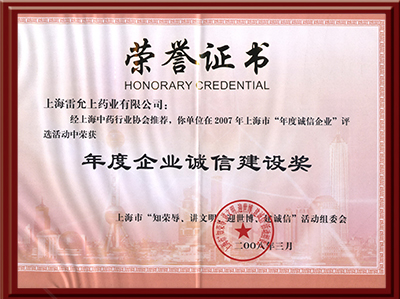 荣获上海市企业管理现代化创新成果一等奖,成果名称:中药民族品牌的重塑和管理