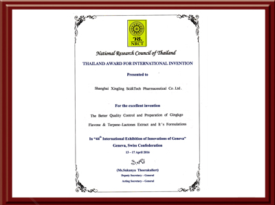 银杏酮酯获得由中华人民共和国卫生部颁发的新药证书