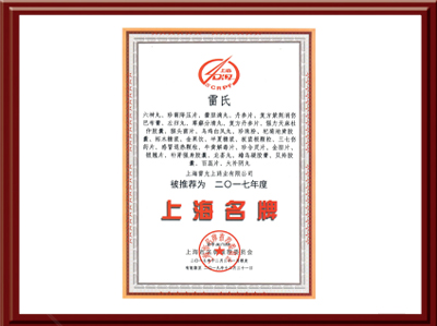 雷氏系列产品被推荐为二〇一七年度上海名牌