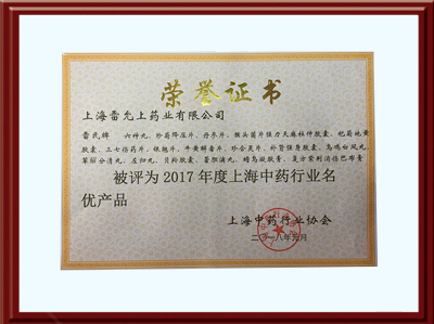 雷氏系列产品被评为2017年度上海中药行业名优产品